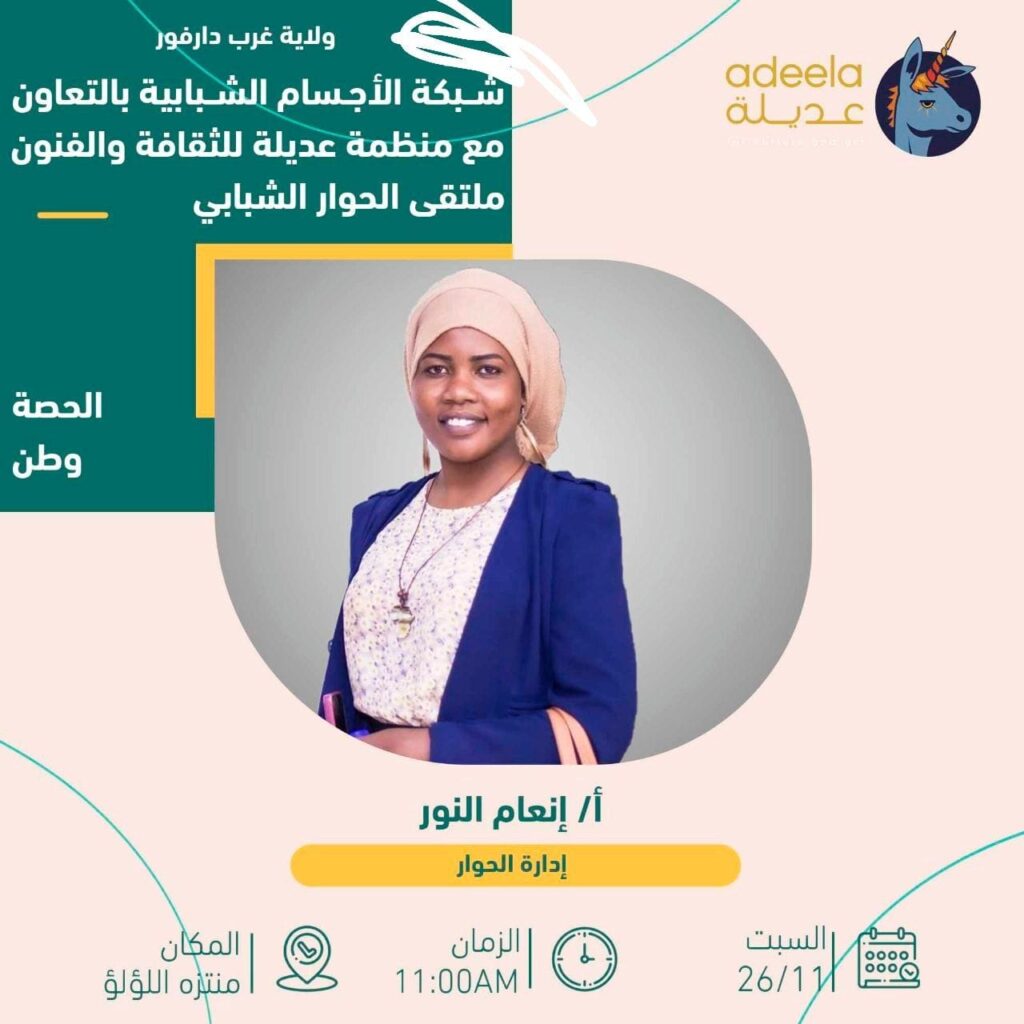 In line with the vision of Women of Change Organization, which calls for a society governed by peace and equal rights between genders, we will participate on Saturday with a group of youth-led entities—represented by the Youth Bodies Network—in cooperation with Adeela Organization for Culture and Arts, in the “Youth Dialogue Forum.” Through community dialogues, this forum aims to establish a space for peace within the community.